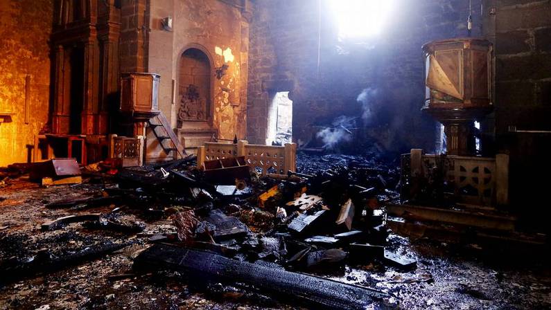 Ya por tarde, y después de que los bomberos abandonase la zona al dar por extinguido el incendio, hubo un pequeño rebrote en la sacristía. Voluntarios de Protección Civil se vieron obligados a remover las cenizas para evitar que se propagasen las llamas.